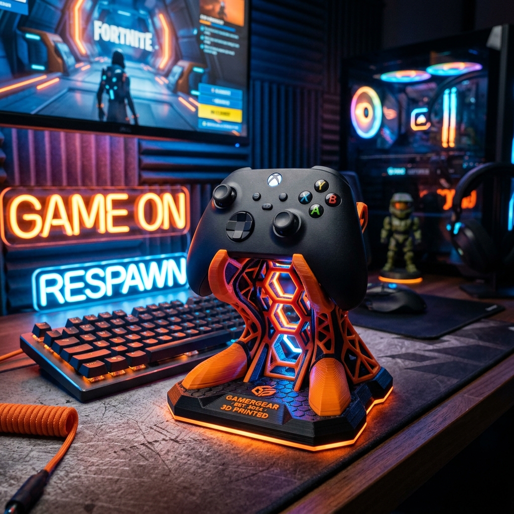 Удобная эргономичная подставка для геймпадов Xbox, PlayStation или Nintendo. Придайте своему игровому месту аккуратный вид.
